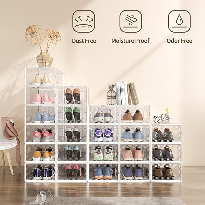 Do your shoes like to run away from their pair? Mine do! These shoe storage boxes will ensure that your shoes stick together for easy access. It also puts your favorite sneakers on display, while keeping the dust off of your less worn shoes.