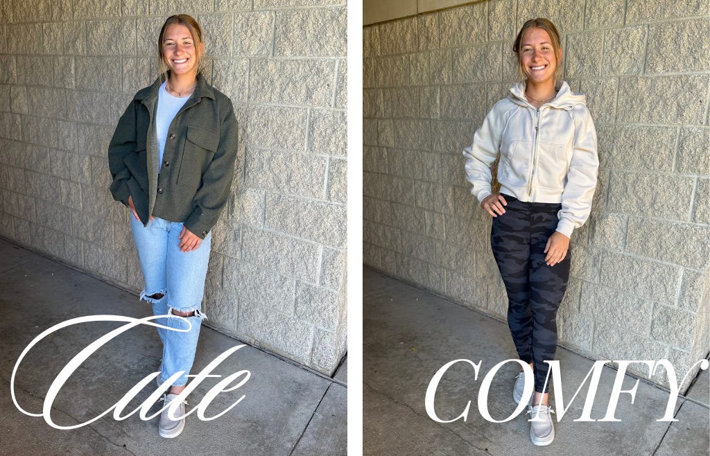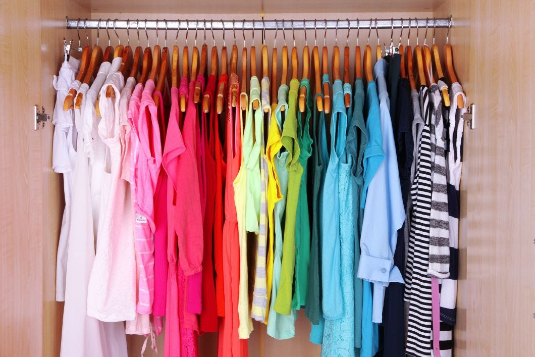 Personally, my clothes are split into two main categories, “cute” and “comfy.” When picking out an outfit, I first think about whether I want to dress cute or comfy that day. Cute usually means jeans or jean shorts, and a nice shirt. Comfy usually means sweats, athletic shorts, or leggings, and a t-shirt or sweatshirt. Because of this, I have all of my “cute” clothes on half of my closet and my “comfy” clothes on the other half. Within those, I categorize by type of clothing, like tank tops, short-sleeves, long-sleeves, etc. since that is what my brain thinks of next. Within each category, the items are color-coded, which I find visually appealing and helps me easily locate the specific shirt I’m looking for.